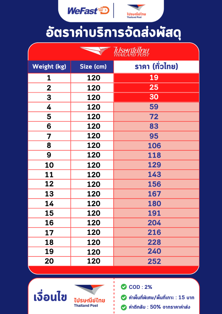 สามารถเข้ารับสินค้าที่มีน้ำหนักไม่เกิน 20 kg